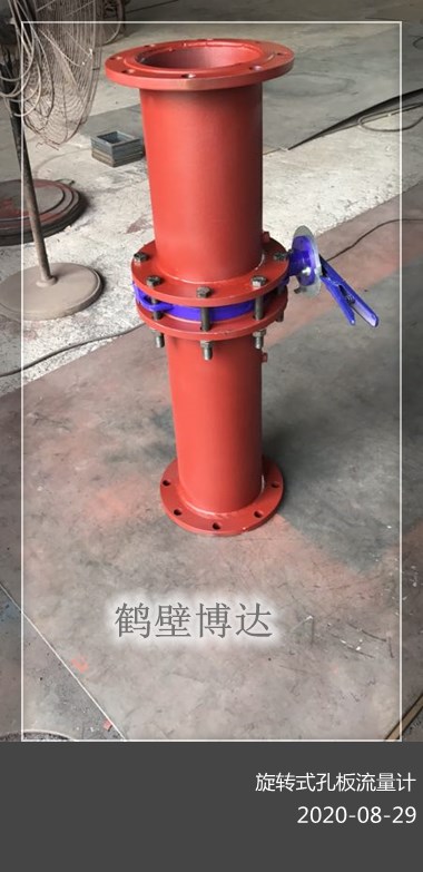 旋轉(zhuǎn)式孔板流量計(jì)主要由進(jìn)流體管路1、旋轉(zhuǎn)手柄2、出流體管路3、測(cè)壓咀4、密封圈、連接螺栓與螺母、法蘭、孔板、密封墊、出流體管路等構(gòu)成??装迨且粔K具有圓形開(kāi)孔并相對(duì)于開(kāi)孔軸線對(duì)稱的圓形薄板,不同管道內(nèi)徑的孔板,其結(jié)構(gòu)形式是幾何相似的。